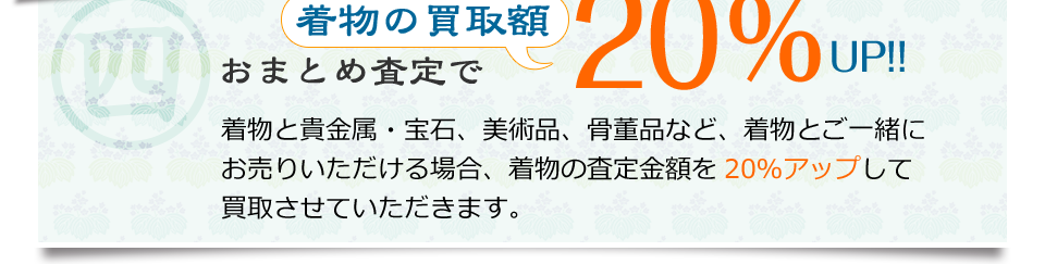 - A. 当社は専門の鑑定士が査定しますので適正価格で買取いたします。作家名や購入時の値段など着物の価値が分からない場合でも、安心してお任せください。